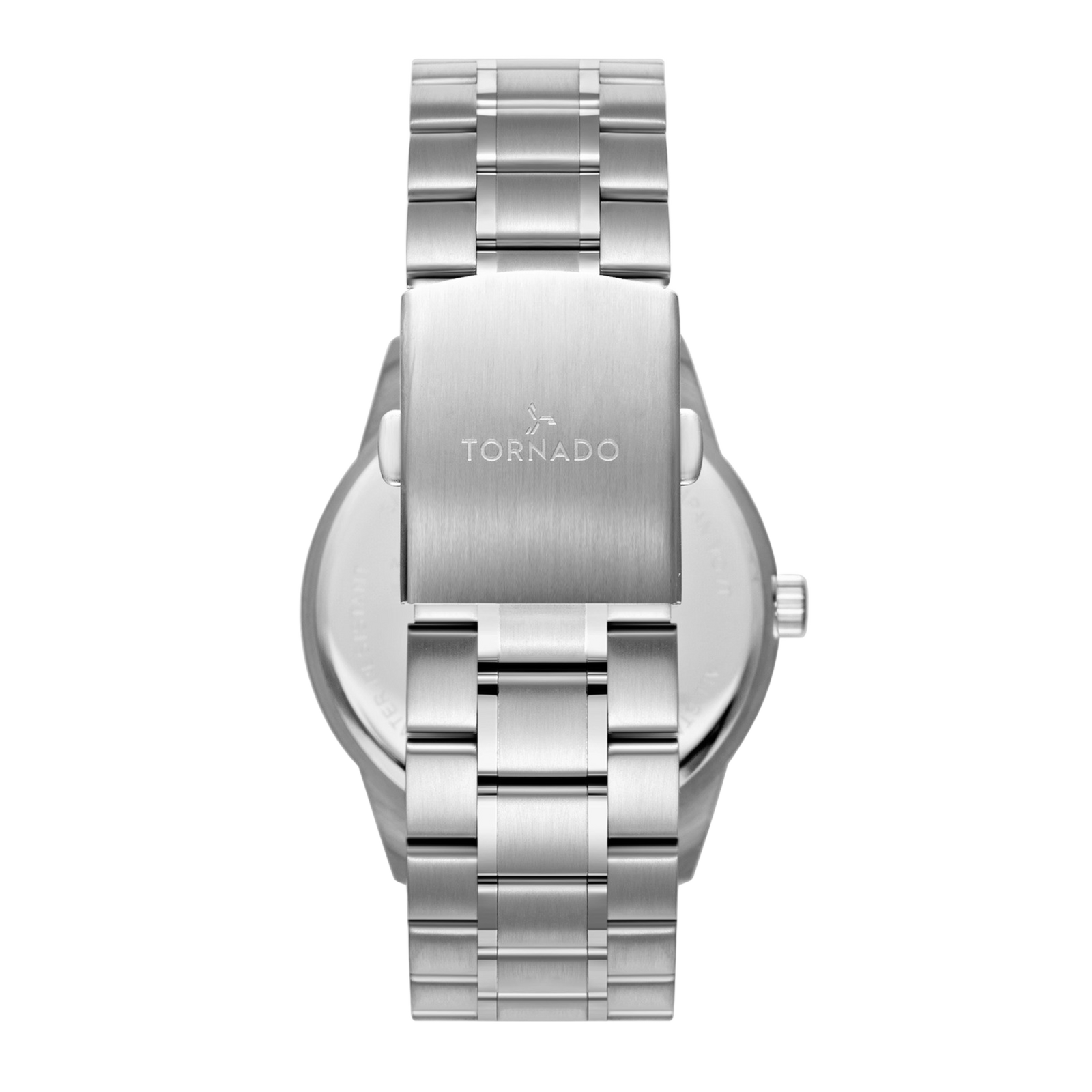 This silver and black TORNADO CLASSIC takes a pleasant yet restrained approach to the collection. The brushed 316L stainless steel case keeps reflections muted, giving the watch a composed presence. At 42.5 mm, it reads confidently on the wrist without feeling oversized, helped by the clean geometry of the round case.