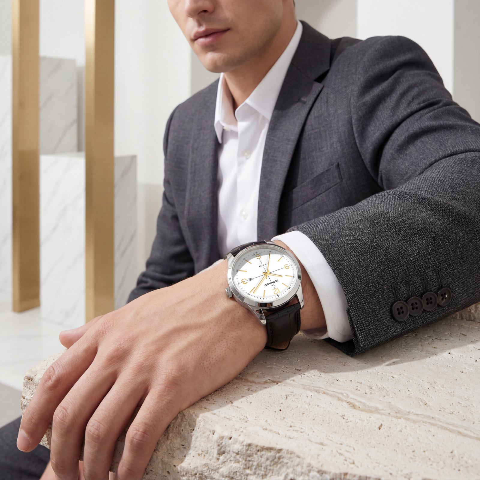 This configuration of the TORNADO CLASSIC leans into the traditional register, pairing a white dial with gold-toned markers and hands for a look that feels composed and familiar. The contrast is the right balance of gentle and sharp, giving the dial an almost archival quality.