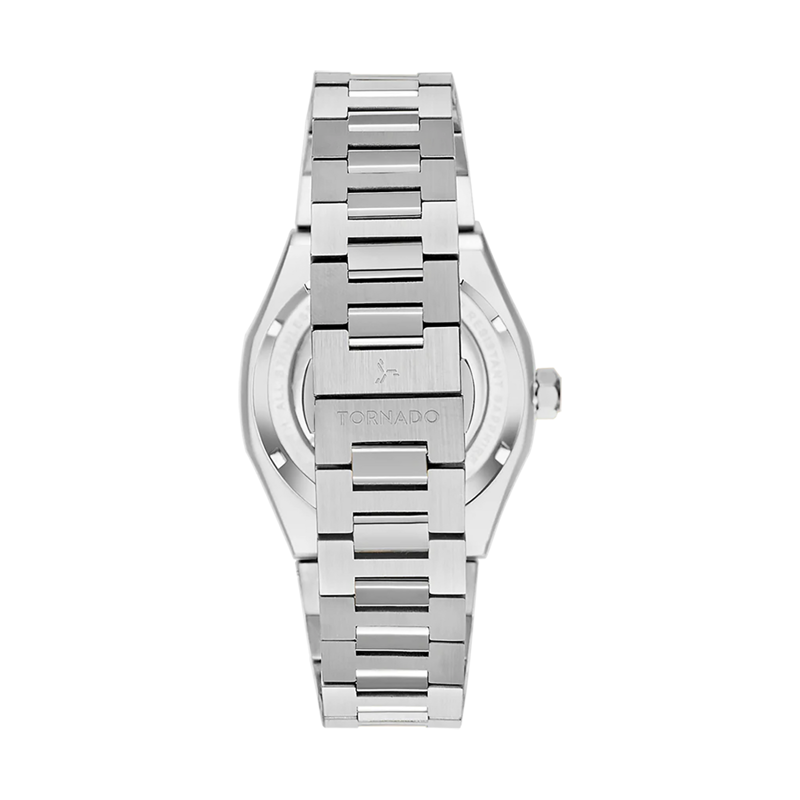 Tornado Autonova Men's Automatic Watch with blue dial, silver case, and strap. TMI NH70 movement with sapphire coated glass. 10ATM water resistant. 3-year warranty included.