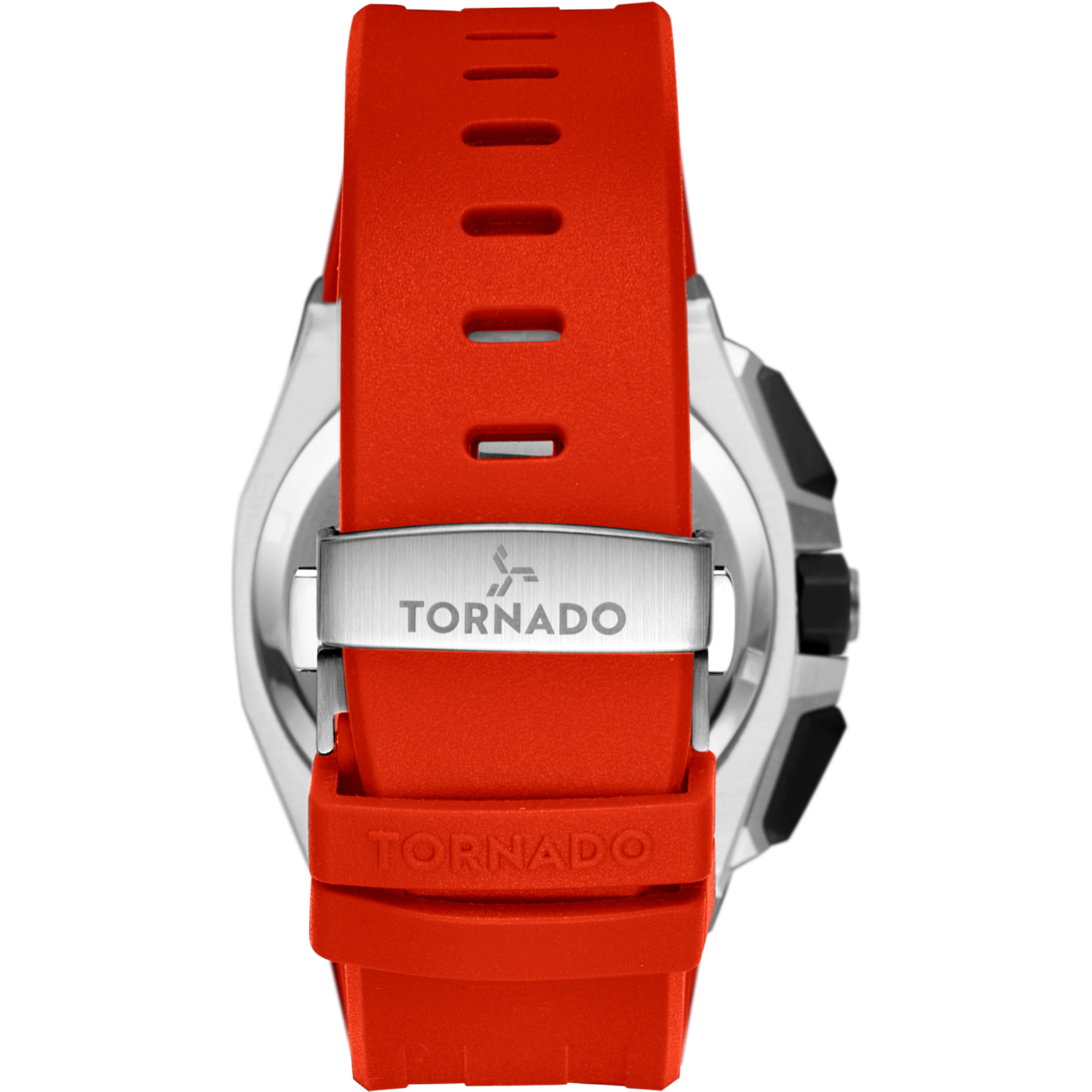 The Tornado Lumina Chronosphere chronograph in silver and orange presents a more expressive take on the collection’s technical design. The 43 mm case is formed from 316L solid stainless steel, finished with alternating brushed and polished surfaces that give the watch visual depth while keeping reflections controlled. The 12.5 mm thick round case is framed by an octagonal bezel, adding angular definition and a distinctly modern edge. A sapphire-coated glass sits above the dial, offering durability and clear visibility. The orange accented dial brings energy to the chronograph layout, with subdials arranged for balance and easy reading. The colour choice enhances legibility while giving the watch a bold, contemporary character. At the core is the Miyota JS05 chronograph movement, selected for reliable operation and precise timekeeping. The watch carries a water resistance rating of 10 ATM. An orange high-quality silicone strap reinforces the sporty tone while providing flexibility and long-wearing comfort. The strap integrates smoothly with the case and secures with a butterfly buckle for a clean, uninterrupted profile on the wrist. Covered by a three-year warranty, this Lumina Chronosphere balances bold colour, functional chronograph performance, and solid construction in a cohesive design.